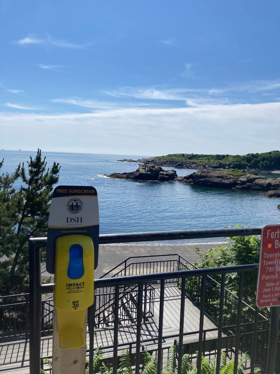 “We are thrilled to partner with IMPACT Melanoma to make sun protection more accessible to residents. Wearing sunscreen is one of the best and easiest ways to protect skin from damaging UV rays,” said Nahant’s Public Health Nurse Deb Murphy, “Used regularly, sun screen helps prevent sunburn, skin cancer, and premature aging. Sunscreen dispensers have been placed for public use throughout our community to help promote sun safety. We hope the public will take advantage of the sunscreen dispensers.”