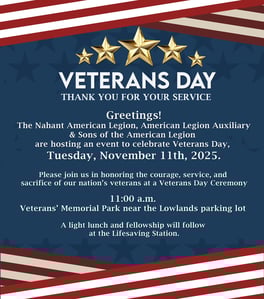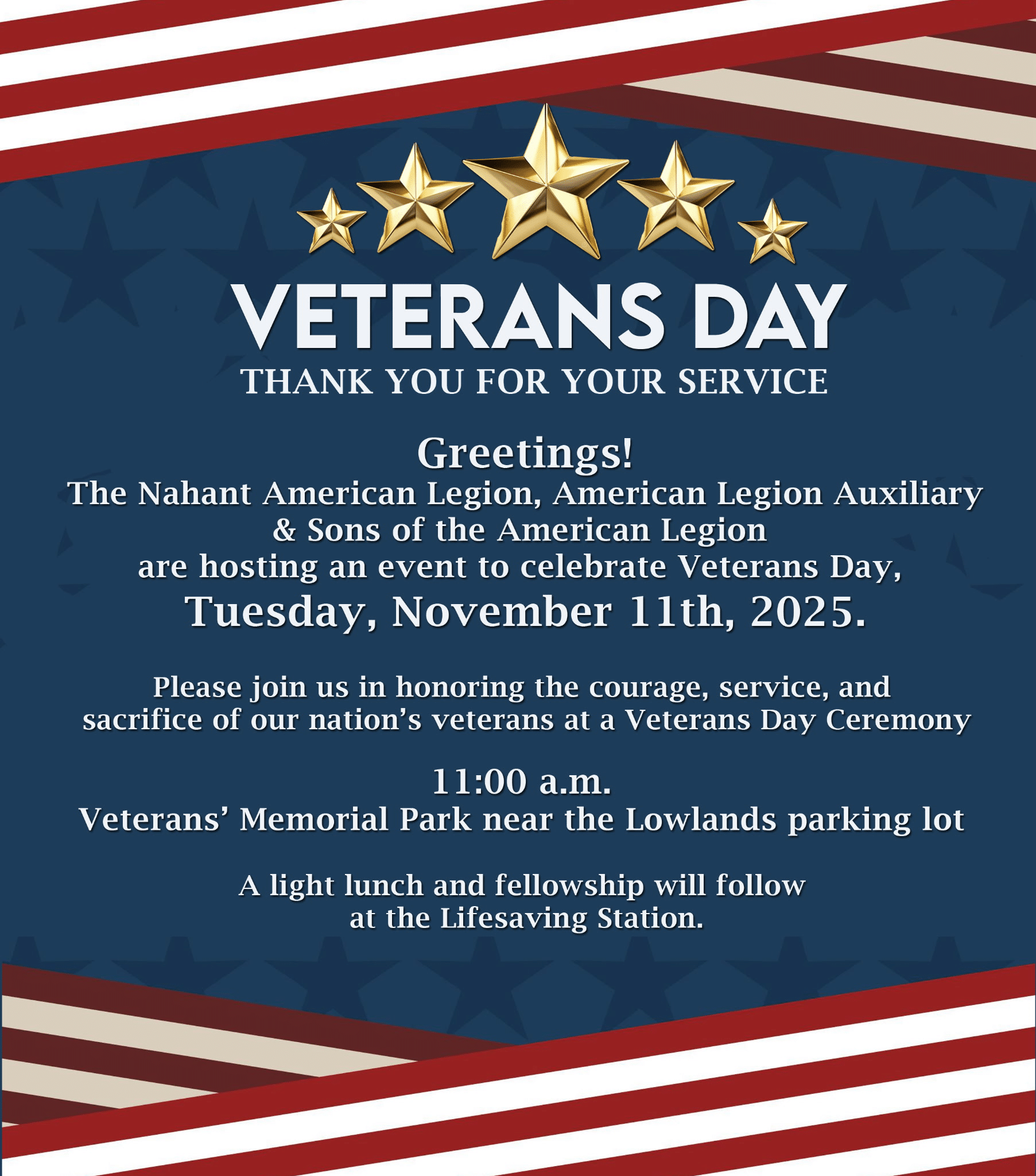 The Nahant American Legion, American Legion Auxiliary and Sons of the American Legion will be hosting an event to celebrate Veterans Day